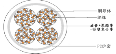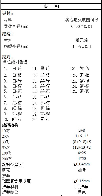 HYA大對數(shù)導體采用實心退火軟圓銅線,聚乙烯 絕緣,聚酯帶+鋁塑復合帶, PE護套料